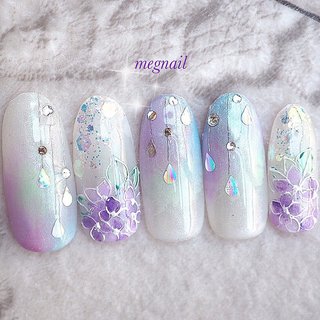 紫 水色 ゆめかわ 紫陽花 梅雨 青 ニュアンス 海 夏 サマー ネイルチップ つけ爪 ハンドメイド 手作り Iichi ハンドメイド クラフト作品 手仕事品の通販